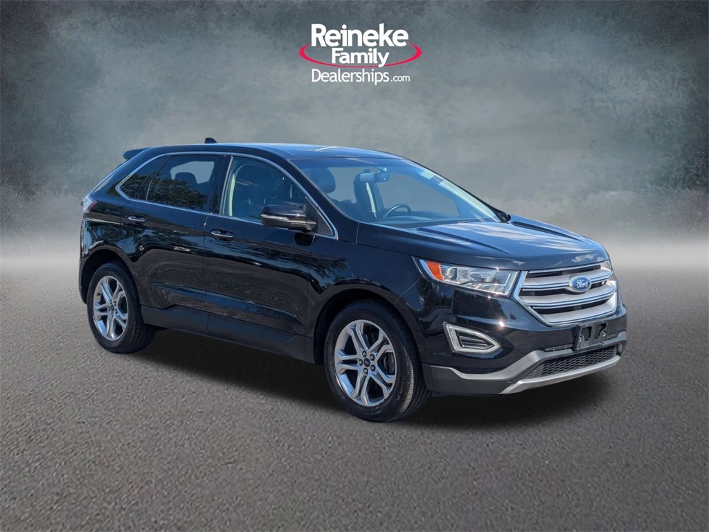 2018 Ford Edge Titanium AWD EcoBoost 2.0L I4 GTDi DOHC Turbocharged VCT 6-Speed AutomaticCheck out all these great options! Equipment Group 300A, 12 Speakers, 3.36 Axle Ratio, 4-Wheel Disc Brakes, ABS brakes, Air Conditioning, Alloy wheels, AM/FM radio: SiriusXM, AM/FM Stereo w/Single CD Player, Apple CarPlay/Android Auto, Auto-dimming Rear-View mirror, Automatic temperature control, Brake assist, Bumpers: body-color, CD player, Compass, Delay-off headlights, Driver door bin, Driver vanity mirror, Dual front impact airbags, Dual front side impact airbags, Electronic Stability Control, Emergency communication system: SYNC 3 911 Assist, Exterior Parking Camera Rear, Four wheel independent suspension, Front anti-roll bar, Front Bucket Seats, Front Center Armrest w/Storage, Front dual zone A/C, Front License Plate Bracket, Front reading lights, Fully automatic headlights, Garage door transmitter, Heated door mirrors, Heated front seats, Illuminated entry, Knee airbag, Leather Shift Knob, Leather-Trimmed Heated Sport Bucket Seats, Low tire pressure warning, Memory seat, Occupant sensing airbag, Outside temperature display, Overhead airbag, Overhead console, Panic alarm, Passenger door bin, Passenger vanity mirror, Power door mirrors, Power driver seat, Power Liftgate, Power passenger seat, Power steering, Power windows, Premium audio system: Sony, Rear anti-roll bar, Rear Parking Sensors, Rear reading lights, Rear seat center armrest, Rear window defroster, Rear window wiper, Remote keyless entry, Security system, SiriusXM Radio, Speed control, Speed-Sensitive Wipers, Split folding rear seat, Spoiler, Steering wheel mounted audio controls, SYNC 3 Communications & Entertainment System, Tachometer, Telescoping steering wheel, Tilt steering wheel, Traction control, Trip computer, Turn signal indicator mirrors, Variably intermittent wipers, and Wheels: 19" Nickel-Painted Aluminum.Clean CARFAX.Awards: * 2018 KBB.com 10 Most Awarded Brands * 2018 KBB.com Brand Image AwardsAt Reineke Family of Dealerships, we pride ourselves on delivering a convenient and transparent buying experience. Get your key from Reineke! Please be aware that all listed vehicles are subject to additional applicable sales tax, titling, license, and registration fees, including a registration convenience fee of $50 where applicable and a documentary fee of up to $387. We attempt to update this inventory on a regular basis. However, there can be a delay between the sale of a vehicle and the update of the inventory. Vehicle mileage listed may vary due to vehicle demonstrations. All pre-owned vehicles are represented and sold AS-IS with no dealer warranty, although manufacturer warranty may remain and vehicle may be eligible for an optional vehicle service contract. Although every reasonable effort has been made to ensure the accuracy of the information contained on this site, absolute accuracy cannot be guaranteed, including vehicle equipment, condition and pricing. All vehicles are subject to prior sale, so please give us a call at 419-422-1661 to confirm vehicle availability. Vehicles shown at different locations are not currently in our inventory (not in stock) but can be made available to you at our location within a reasonable date from the time of your request, not to exceed one week.