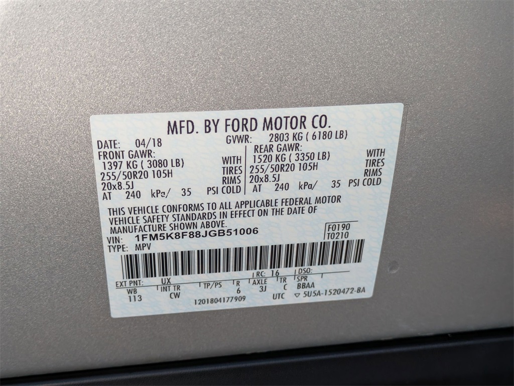 2018 Ford Explorer Limited 4WD 3.5L 6-Cylinder SMPI Turbocharged DOHC 6-Speed Automatic with Select-ShiftONE OWNER, **PANORAMIC ROOF**, Adaptive Cruise Control & Fwd Collision Warning, Auto High-Beam Headlights, BLIS Blind Spot Information System, Ford Safe & Smart Package, Lane-Keeping System, Navigation System, Rain-Sensing Wipers (Front Only).Check out all these great options! Ford Safe & Smart Package (Adaptive Cruise Control & Fwd Collision Warning, Auto High-Beam Headlights, BLIS Blind Spot Information System, Lane-Keeping System, and Rain-Sensing Wipers (Front Only)), Equipment Group 301A (Enhanced Active Park Assist w/Parallel Park, Inflatable Rear Safety Belts, and Multi-Contour Front Seats w/Active Motion), Navigation System, 12 Speakers, 2nd Row Bucket Seats w/Power-Assist Fold, 2nd Row Console, 3.65 Axle Ratio, 3rd row seats: split-bench, 4-Wheel Disc Brakes, ABS brakes, Air Conditioning, Alloy wheels, AM/FM radio: SiriusXM, AppLink/Apple CarPlay and Android Auto, Auto tilt-away steering wheel, Auto-dimming Rear-View mirror, Automatic temperature control, Brake assist, Bumpers: body-color, CD player, Compass, Delay-off headlights, Driver door bin, Driver vanity mirror, Dual front impact airbags, Dual front side impact airbags, Electronic Stability Control, Emergency communication system: SYNC 3 911 Assist, Exterior Parking Camera Rear, Four wheel independent suspension, Front anti-roll bar, Front Bucket Seats, Front Center Armrest, Front dual zone A/C, Front fog lights, Front reading lights, Fully automatic headlights, Garage door transmitter, Heated door mirrors, Heated front seats, Heated rear seats, Heated steering wheel, Illuminated entry, Knee airbag, Leather steering wheel, Low tire pressure warning, Memory seat, Occupant sensing airbag, Outside temperature display, Overhead airbag, Overhead console, Panic alarm, Passenger door bin, Passenger vanity mirror, Perforated Leather Heated/Cooled Bucket Seats, Power door mirrors, Power driver seat, Power Liftgate, Power passenger seat, Power steering, Power windows, Premium audio system: Sony, Radio data system, Radio: Sony Audio System w/CD Player, Rear air conditioning, Rear anti-roll bar, Rear reading lights, Rear seat center armrest, Rear window defroster, Rear window wiper, Remote keyless entry, Roof rack: rails only, Security system, Speed control, Speed-sensing steering, Speed-Sensitive Wipers, Split folding rear seat, Spoiler, Steering wheel memory, Steering wheel mounted audio controls, SYNC 3 Communications & Entertainment System, Tachometer, Telescoping steering wheel, Tilt steering wheel, Traction control, Trip computer, Turn signal indicator mirrors, Twin Panel Moonroof, Variably intermittent wipers, Ventilated front seats, and Wheels: 20" Premium Luster Nickel-Painted Aluminum.CARFAX One-Owner.Odometer is 6217 miles below market average!Awards: * 2018 KBB.com 10 Most Awarded Brands * 2018 KBB.com Brand Image AwardsAt Reineke Family of Dealerships, we pride ourselves on delivering a convenient and transparent buying experience. Get your key from Reineke! Please be aware that all listed vehicles are subject to additional applicable sales tax, titling, license, and registration fees, including a registration convenience fee of $50 where applicable and a documentary fee of up to $387. We attempt to update this inventory on a regular basis. However, there can be a delay between the sale of a vehicle and the update of the inventory. Vehicle mileage listed may vary due to vehicle demonstrations. All pre-owned vehicles are represented and sold AS-IS with no dealer warranty, although manufacturer warranty may remain and vehicle may be eligible for an optional vehicle service contract. Although every reasonable effort has been made to ensure the accuracy of the information contained on this site, absolute accuracy cannot be guaranteed, including vehicle equipment, condition and pricing. All vehicles are subject to prior sale, so please give us a call a