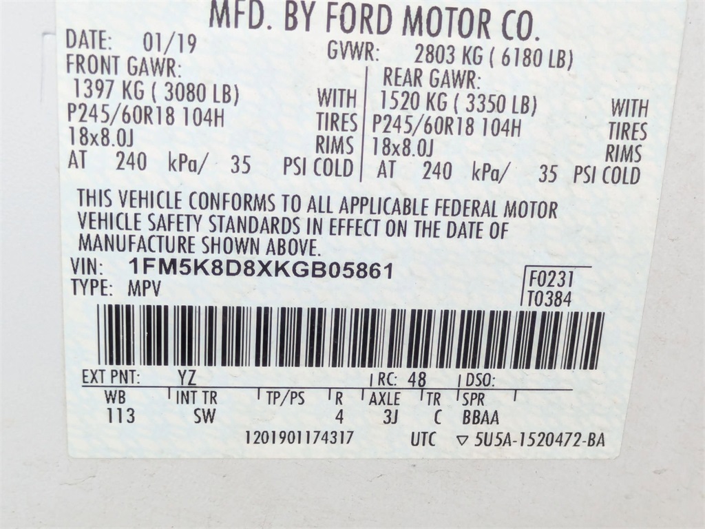 2019 Ford Explorer XLT 4WD 3.5L 6-Cylinder SMPI DOHC 6-Speed Automatic with Select-Shift2 Driver Configurable 4.2" Color LCD Displays, 8-Way Power Passenger Seat, ActiveX Seating Material Heated Front Bucket Seats, Auto-Dimming Rear-View Mirror, BLIS Blind Spot Information System, Comfort Package, Driver Connect Package, Dual-Zone Electronic Automatic Temperature Ctrl, Equipment Group 202A, FordPass Connect, Forward Sensing System, Heated Steering Wheel, LED Fog Lamps, LED Signature Lighting,...