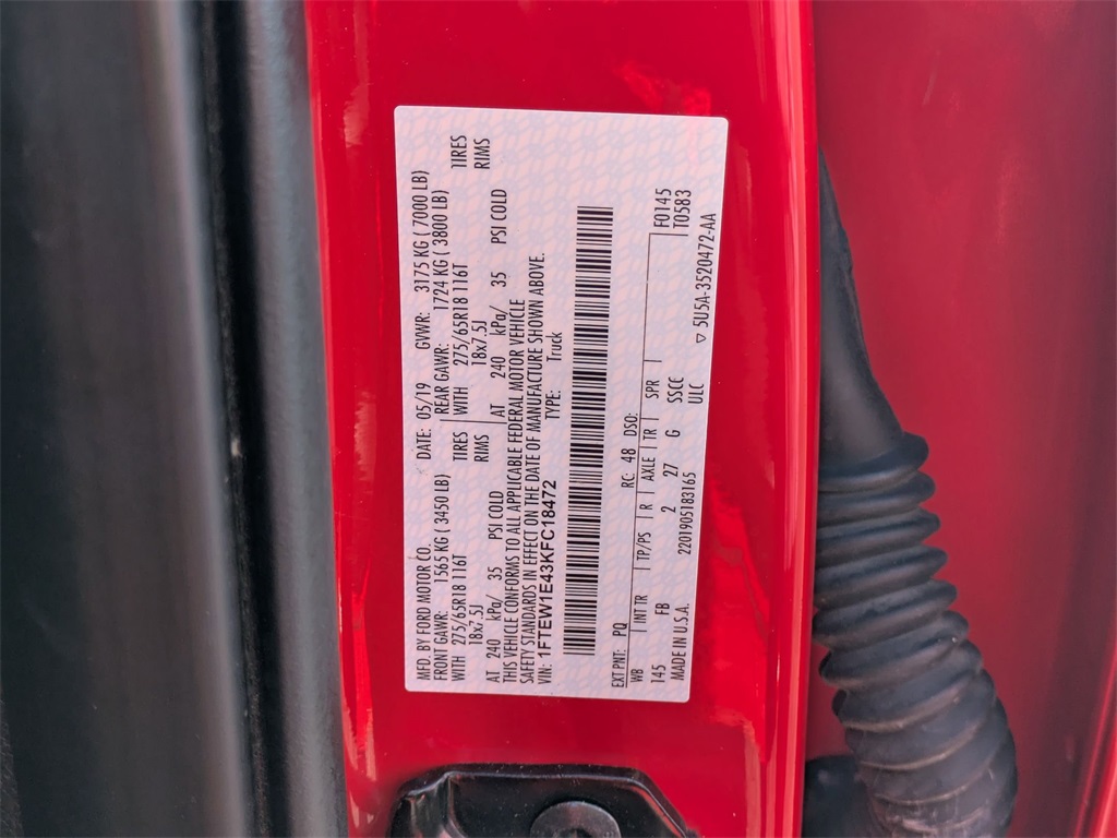 2019 Ford F-150 XLT 4WD 3.5L V6 EcoBoost 10-Speed Automatic10-Way Power Driver & Passenger Seats, 2-Bar Style Grille w/2 Minor Bars Painted Dark, 2-Bar Style Grille w/Chrome 2 Minor Bars, 4.2" Productivity Screen in Instrument Cluster, Accent-Color Step Bars, Auto-Dimming Rear-View Mirror, Body-Color Door & Tailgate Handles, Body-Color Front & Rear Bumpers, Box Side Decals, Chrome Door & Tailgate Handles w/Body-Color Bezel, Chrome Step Bars, Cloth 40/20/40 Front Seat, Equipment Group 302A...