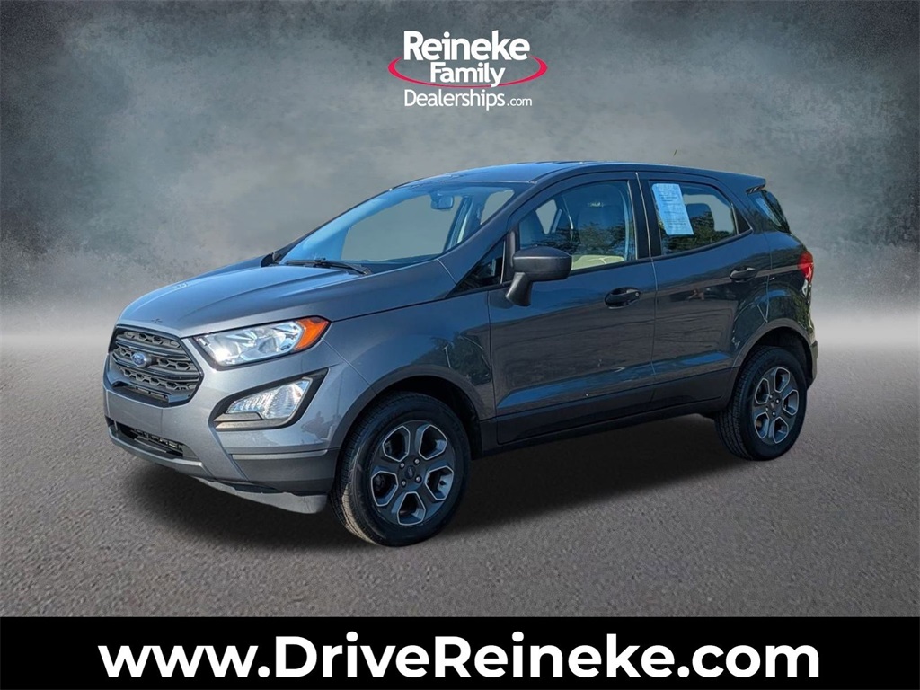 2020 Ford EcoSport SE FWD EcoBoost 1.0L I3 GTDi DOHC Turbocharged VCT 6-Speed AutomaticCheck out all these great options! Equipment Group 200A, SE Convenience Package (110V/150W AC Power Outlet, 7 Speakers, Ambient Lighting, BLIS Blind Spot Information System, SiriusXM Traffic & Travel Link, and SYNC 3 Communications & Entertainment System w/47B), 3.44 Axle Ratio, 4-Wheel Disc Brakes, 6 Speakers, ABS brakes, Air Conditioning, Alloy wheels, AM/FM radio: SiriusXM, AppLink/Apple CarPlay and Android Auto, Automatic temperature control, Brake assist, Bumpers: body-color, Compass, Delay-off headlights, Driver door bin, Driver vanity mirror, Dual front impact airbags, Dual front side impact airbags, Electronic Stability Control, Emergency communication system: SYNC 3 911 Assist, Exterior Parking Camera Rear, Front anti-roll bar, Front Bucket Seats, Front Center Armrest, Front fog lights, Front reading lights, Front wheel independent suspension, Fully automatic headlights, Heated front seats, Illuminated entry, Knee airbag, Leather Shift Knob, Leather steering wheel, Low tire pressure warning, Occupant sensing airbag, Outside temperature display, Overhead airbag, Overhead console, Panic alarm, Passenger door bin, Passenger vanity mirror, Power door mirrors, Power driver seat, Power moonroof, Power steering, Power windows, Radio data system, Radio: AM/FM Stereo w/MP3 Capable, Rear Parking Sensors, Rear seat center armrest, Rear side impact airbag, Rear window defroster, Rear window wiper, Remote keyless entry, Roof rack: rails only, SiriusXM Radio, Speed control, Speed-sensing steering, Split folding rear seat, Steering wheel mounted audio controls, SYNC 3 Communications & Entertainment System, Tachometer, Telescoping steering wheel, Tilt steering wheel, Tire Inflator & Sealant Kit, Traction control, Trip computer, Turn signal indicator mirrors, Unique Cloth Heated Front Bucket Seats, Variably intermittent wipers, and Wheels: 16" Shadow Silver-Painted Aluminum.CARFAX One-Owner.Recent Arrival!At Reineke Family of Dealerships, we pride ourselves on delivering a convenient and transparent buying experience. Get your key from Reineke! Please be aware that all listed vehicles are subject to additional applicable sales tax, titling, license, and registration fees, including a registration convenience fee of $50 where applicable and a documentary fee of up to $387. We attempt to update this inventory on a regular basis. However, there can be a delay between the sale of a vehicle and the update of the inventory. Vehicle mileage listed may vary due to vehicle demonstrations. All pre-owned vehicles are represented and sold AS-IS with no dealer warranty, although manufacturer warranty may remain and vehicle may be eligible for an optional vehicle service contract. Although every reasonable effort has been made to ensure the accuracy of the information contained on this site, absolute accuracy cannot be guaranteed, including vehicle equipment, condition and pricing. All vehicles are subject to prior sale, so please give us a call at 419-422-1661 to confirm vehicle availability. Vehicles shown at different locations are not currently in our inventory (not in stock) but can be made available to you at our location within a reasonable date from the time of your request, not to exceed one week.