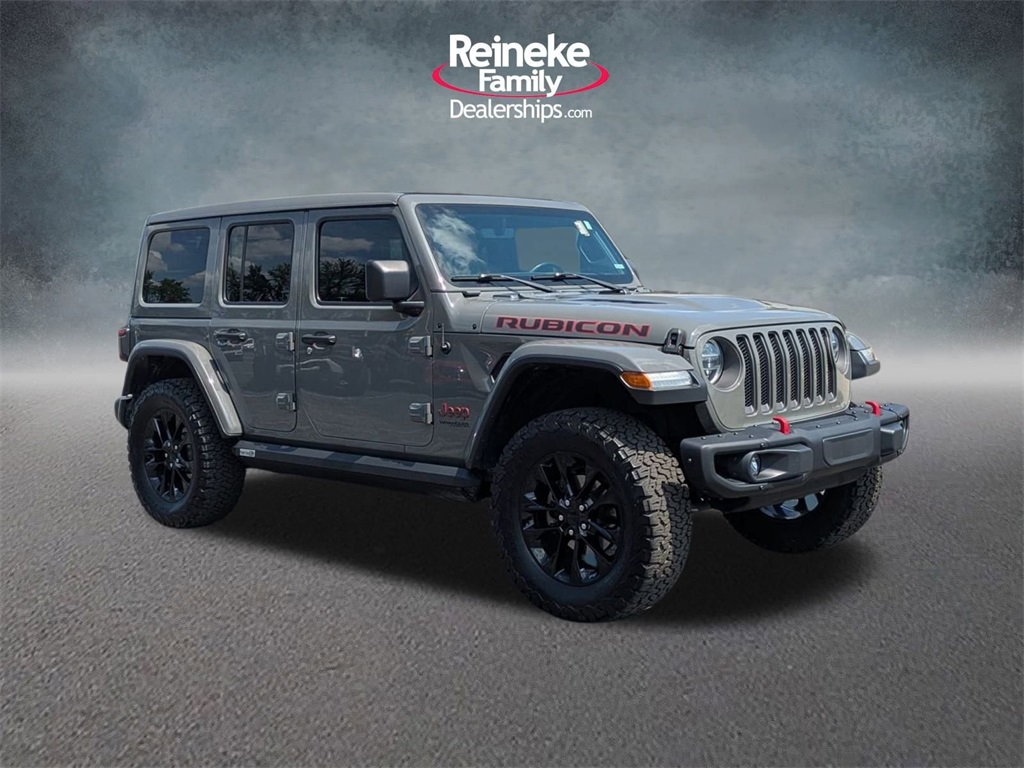 2020 Jeep Wrangler Unlimited Rubicon 4WD 2.0L I4 DOHC 8-Speed Automatic240 Amp Alternator, 7 & 4 Pin Wiring Harness, 700 Amp Maintenance Free Battery, Auxiliary Switches, Class II Receiver Hitch, GPS Navigation, Power Top Quarter Window Storage Bag, Rear Window Defroster, Rear Window Wiper/Washer, Removable Rear Quarter Windows, Sky 1-Touch Power Top, Trailer Tow & HD Electrical Group.Check out all these great options! Trailer Tow & HD Electrical Group (240 Amp Alternator, 7 & 4 Pin Wiring Harness, 700 Amp Maintenance Free Battery, Auxiliary Switches, and Class II Receiver Hitch), 8.4" Radio & Premium Audio Group (GPS Navigation, 1-Year SiriusXM Guardian Trial, 4G LTE Wi-Fi Hot Spot, 5-Year SiriusXM Traffic Service, 5-Year SiriusXM Travel Link Service, 8.4" Touchscreen Display, Alpine Premium Audio System, Auto-Dimming Rear-View Mirror, Emergency/Assistance Call, For Details, Visit DriveUconnect.com, HD Radio, Radio: Uconnect 4C Nav w/8.4" Display, SiriusXM Traffic Plus, and SiriusXM Travel Link), Cold Weather Group (Heated Front Seats and Heated Steering Wheel), LED Lighting Group (Daytime Running Lamps LED Accents, Front LED Fog Lamps, LED Reflector Headlamps, and LED Taillamps), Quick Order Package 22R, Safety Group (Blind Spot & Cross Path Detection and ParkSense Rear Park Assist System), Steel Bumper Group (Steel Front Bumper and Steel Rear Bumper), Power Top Quarter Window Storage Bag, Rear Window Defroster, Rear Window Wiper/Washer, Removable Rear Quarter Windows, Sky 1-Touch Power Top, 4-Wheel Disc Brakes, 4.10 Rear Axle Ratio, 8 Speakers, ABS brakes, Air Conditioning, Alloy wheels, AM/FM radio: SiriusXM, Apple CarPlay/Android Auto, Automatic temperature control, Aux Battery, BF Goodrich Brand Tires, Body Color Fender Flares, Brake assist, Compass, Delay-off headlights, Driver door bin, Driver vanity mirror, Dual front impact airbags, Dual front side impact airbags, Electronic Stability Control, Front anti-roll bar, Front Bucket Seats, Front Center Armrest w/Storage, Front dual zone A/C, Front fog lights, Front License Plate Bracket, Front reading lights, Fully automatic headlights, Garage door transmitter, Heated door mirrors, Illuminated entry, Integrated roll-over protection, Leather steering wheel, Low tire pressure warning, Non-Lock Fuel Cap w/o Discriminator, Occupant sensing airbag, Outside temperature display, Panic alarm, ParkView Rear Back-Up Camera, Passenger door bin, Passenger vanity mirror, Performance Suspension, Power door mirrors, Power steering, Power windows, Premium Cloth Low-Back Bucket Seats, Radio data system, Radio: Uconnect 4 w/7" Display, Rear anti-roll bar, Rear reading lights, Remote keyless entry, Remote Proximity Keyless Entry, Remote Start System, Security system, Speed control, Split folding rear seat, Steering wheel mounted audio controls, Stop-Start Dual Battery System, Tachometer, Telescoping steering wheel, Tilt steering wheel, Traction control, Trip computer, Variably intermittent wipers, Voltmeter, and Wheels: 17" x 7.5" Machined w/Black PocketS.CARFAX One-Owner. Clean CARFAX.At Reineke Family of Dealerships, we pride ourselves on delivering a convenient and transparent buying experience. Get your key from Reineke! Please be aware that all listed vehicles are subject to additional applicable sales tax, titling, license, and registration fees, including a registration convenience fee of $50 where applicable and a documentary fee of up to $387. We attempt to update this inventory on a regular basis. However, there can be a delay between the sale of a vehicle and the update of the inventory. Vehicle mileage listed may vary due to vehicle demonstrations. All pre-owned vehicles are represented and sold AS-IS with no dealer warranty, although manufacturer warranty may remain and vehicle may be eligible for an optional vehicle service contract. Although every reasonable effort has been made to ensure the accuracy of the information contained on this site, absolute accuracy cannot be
