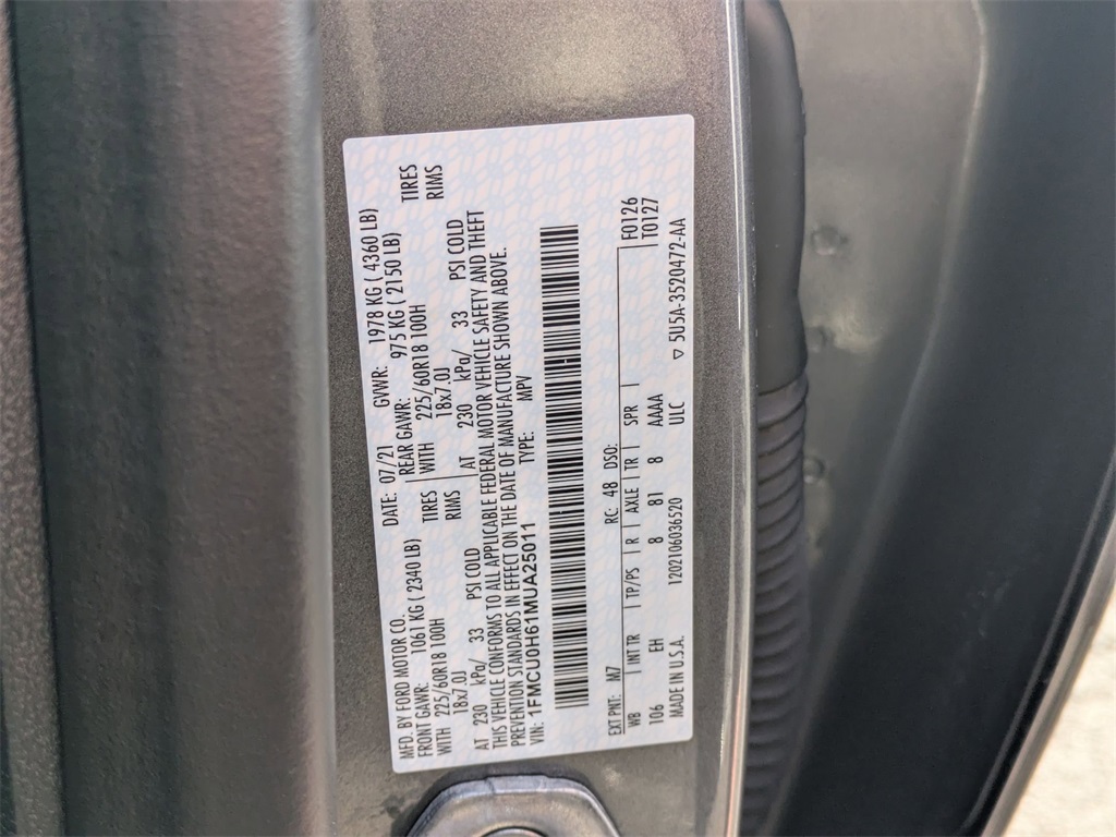 2021 Ford Escape SEL FWD 1.5L EcoBoost 8-Speed AutomaticCheck out all these great options! Equipment Group 301A, Ford Co-Pilot360 Assist+ (Adaptive Cruise Control w/Stop-and-Go, Speed Sign Recognition, and Voice-Activated Touchscreen Navigation System), 18" Machined-Face Aluminum Wheels, 3.52 Axle Ratio, 4-Wheel Disc Brakes, 6 Speakers, ABS brakes, Air Conditioning, Alloy wheels, AM/FM radio: SiriusXM, AM/FM Stereo, Auto High-beam Headlights, Automatic temperature control, Brake assist, Bumpers:...