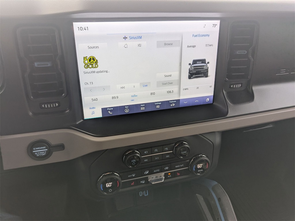 2023 Ford Bronco Wildtrak 4WD 2.7L EcoBoost V6 10-Speed AutomaticONE OWNER, 12" LCD Capacitive Touchscreen w/Swipe Capability, 360-Degree Camera, Additional Sound Deadening, Equipment Group 353A High Package, Front Parking Sensors, Information on Demand Panel, Sideview Mirrors.Check out all these great options! Equipment Group 353A High Package (12" LCD Capacitive Touchscreen w/Swipe Capability, 360-Degree Camera, Additional Sound Deadening, Front Parking Sensors, Information on Demand Panel, and Sideview Mirrors), 4-Wheel Disc Brakes, 7 Speakers, ABS brakes, Air Conditioning, AM/FM radio: SiriusXM with 360L, AM/FM Stereo, Auto High-beam Headlights, Brake assist, Compass, Convertible HardTop, Convertible roof lining, Delay-off headlights, Driver door bin, Driver vanity mirror, Dual front impact airbags, Dual front side impact airbags, Electronic Stability Control, Emergency communication system: 911 Assist, Exterior Parking Camera Rear, Front anti-roll bar, Front Bucket Seats, Front Center Armrest, Front reading lights, Front wheel independent suspension, Fully automatic headlights, Glass rear window, Heated door mirrors, Illuminated entry, Integrated roll-over protection, Low tire pressure warning, Occupant sensing airbag, Outside temperature display, Overhead airbag, Overhead console, Panic alarm, Passenger door bin, Passenger vanity mirror, Power door mirrors, Power steering, Power windows, Radio data system, Rear window defroster, Rear window wiper, Remote keyless entry, Security system, SiriusXM Radio w/360L, Speed control, Split folding rear seat, Steering wheel mounted audio controls, SYNC 4, Tachometer, Telescoping steering wheel, Tilt steering wheel, Traction control, Trip computer, Variably intermittent wipers, and Wheels: 17" Black High Gloss-Painted Aluminum.CARFAX One-Owner. Clean CARFAX.Recent Arrival! Odometer is 11157 miles below market average!At Reineke Family of Dealerships, we pride ourselves on delivering a convenient and transparent buying experience. Get your key from Reineke! Please be aware that all listed vehicles are subject to additional applicable sales tax, titling, license, and registration fees, including a registration convenience fee of $50 where applicable and a documentary fee of up to $387. We attempt to update this inventory on a regular basis. However, there can be a delay between the sale of a vehicle and the update of the inventory. Vehicle mileage listed may vary due to vehicle demonstrations. All pre-owned vehicles are represented and sold AS-IS with no dealer warranty, although manufacturer warranty may remain and vehicle may be eligible for an optional vehicle service contract. Although every reasonable effort has been made to ensure the accuracy of the information contained on this site, absolute accuracy cannot be guaranteed, including vehicle equipment, condition and pricing. All vehicles are subject to prior sale, so please give us a call at 419-422-1661 to confirm vehicle availability. Vehicles shown at different locations are not currently in our inventory (not in stock) but can be made available to you at our location within a reasonable date from the time of your request, not to exceed one week.