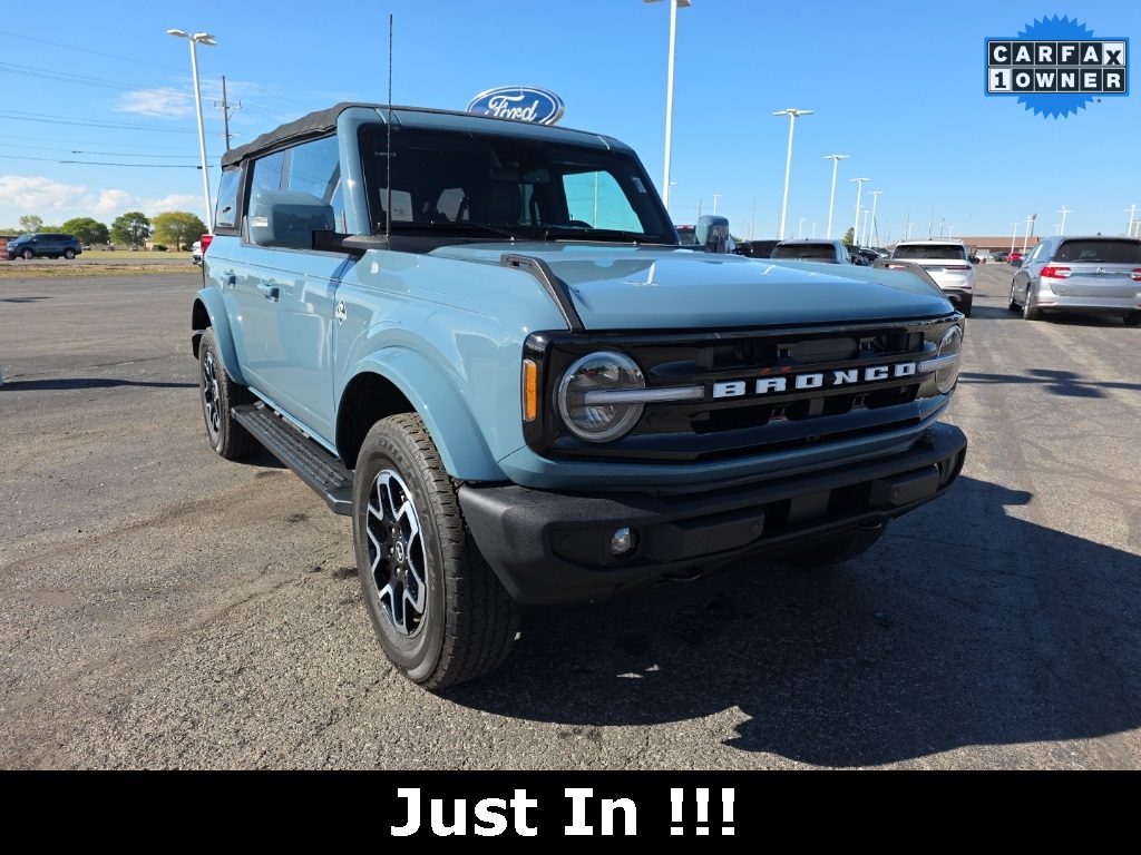 2023 Ford Bronco Outer Banks 4WD 2.7L EcoBoost V6 10-Speed AutomaticABS brakes, Compass, Electronic Stability Control, Heated door mirrors, Illuminated entry, Low tire pressure warning, Remote keyless entry, Traction control.Check out all these great options! ABS brakes, Compass, Electronic Stability Control, Heated door mirrors, Illuminated entry, Low tire pressure warning, Remote keyless entry, Traction control, 4-Wheel Disc Brakes, 7 Speakers, Air Conditioning, AM/FM radio: SiriusXM with 360L, AM/FM Stereo, Auto High-beam Headlights, Brake assist, Delay-off headlights, Driver door bin, Driver vanity mirror, Dual front impact airbags, Dual front side impact airbags, Emergency communication system: 911 Assist, Exterior Parking Camera Rear, Front anti-roll bar, Front Bucket Seats, Front Center Armrest, Front reading lights, Front wheel independent suspension, Fully automatic headlights, Integrated roll-over protection, Occupant sensing airbag, Outside temperature display, Overhead airbag, Overhead console, Panic alarm, Passenger door bin, Passenger vanity mirror, Power door mirrors, Power steering, Power windows, Radio data system, Security system, SiriusXM Radio w/360L, Speed control, Split folding rear seat, Steering wheel mounted audio controls, SYNC 4, Tachometer, Telescoping steering wheel, Tilt steering wheel, Trip computer, and Variably intermittent wipers.CARFAX One-Owner.At Reineke Family of Dealerships, we pride ourselves on delivering a convenient and transparent buying experience. Get your key from Reineke! Please be aware that all listed vehicles are subject to additional applicable sales tax, titling, license, and registration fees, including a registration convenience fee of $50 where applicable and a documentary fee of up to $387. We attempt to update this inventory on a regular basis. However, there can be a delay between the sale of a vehicle and the update of the inventory. Vehicle mileage listed may vary due to vehicle demonstrations. All pre-owned vehicles are represented and sold AS-IS with no dealer warranty, although manufacturer warranty may remain and vehicle may be eligible for an optional vehicle service contract. Although every reasonable effort has been made to ensure the accuracy of the information contained on this site, absolute accuracy cannot be guaranteed, including vehicle equipment, condition and pricing. All vehicles are subject to prior sale, so please give us a call at 419-422-1661 to confirm vehicle availability. Vehicles shown at different locations are not currently in our inventory (not in stock) but can be made available to you at our location within a reasonable date from the time of your request, not to exceed one week.