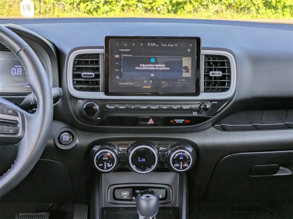 2023 Hyundai Venue Limited FWD I4 CVTCheck out all these great options! Cargo Package (Cargo Blocks, Cargo Net, and Cargo Tray), Option Group 01, 4-Wheel Disc Brakes, 6 Speakers, 6.483 Axle Ratio, 6.5J x 17" Alloy Wheels, ABS brakes, Air Conditioning, Alloy wheels, AM/FM radio: SiriusXM, Apple CarPlay & Android Auto, Auto High-beam Headlights, Automatic temperature control, Brake assist, Bumpers: body-color, Carpeted Floor Mats, Cloth & Leatherette Seat Trim, Delay-off headlights, Driver door bin, Driver vanity mirror, Dual front impact airbags, Dual front side impact airbags, Electronic Stability Control, Emergency communication system, First Aid Kit, Front anti-roll bar, Front Bucket Seats, Front Center Armrest, Front reading lights, Front wheel independent suspension, Fully automatic headlights, Heated door mirrors, Heated Front Bucket Seats, Heated front seats, Illuminated entry, Leather Shift Knob, Leather steering wheel, Low tire pressure warning, Mudguards, Navigation System, Occupant sensing airbag, Outside temperature display, Overhead airbag, Overhead console, Panic alarm, Passenger door bin, Passenger vanity mirror, Power door mirrors, Power steering, Power windows, Radio: AM/FM/HD/SiriusXM w/Navigation System, Rear Seat Cup Holder, Rear window defroster, Rear window wiper, Remote keyless entry, Roof rack: rails only, Security system, Speed control, Speed-sensing steering, Split folding rear seat, Spoiler, Steering wheel mounted audio controls, Tachometer, Telescoping steering wheel, Tilt steering wheel, Traction control, Trip computer, and Variably intermittent wipers.CARFAX One-Owner. Clean CARFAX.Odometer is 6902 miles below market average!At Reineke Family of Dealerships, we pride ourselves on delivering a convenient and transparent buying experience. Get your key from Reineke! Please be aware that all listed vehicles are subject to additional applicable sales tax, titling, license, and registration fees, including a registration convenience fee of $50 where applicable and a documentary fee of up to $387. We attempt to update this inventory on a regular basis. However, there can be a delay between the sale of a vehicle and the update of the inventory. Vehicle mileage listed may vary due to vehicle demonstrations. All pre-owned vehicles are represented and sold AS-IS with no dealer warranty, although manufacturer warranty may remain and vehicle may be eligible for an optional vehicle service contract. Although every reasonable effort has been made to ensure the accuracy of the information contained on this site, absolute accuracy cannot be guaranteed, including vehicle equipment, condition and pricing. All vehicles are subject to prior sale, so please give us a call at 419-422-1661 to confirm vehicle availability. Vehicles shown at different locations are not currently in our inventory (not in stock) but can be made available to you at our location within a reasonable date from the time of your request, not to exceed one week.