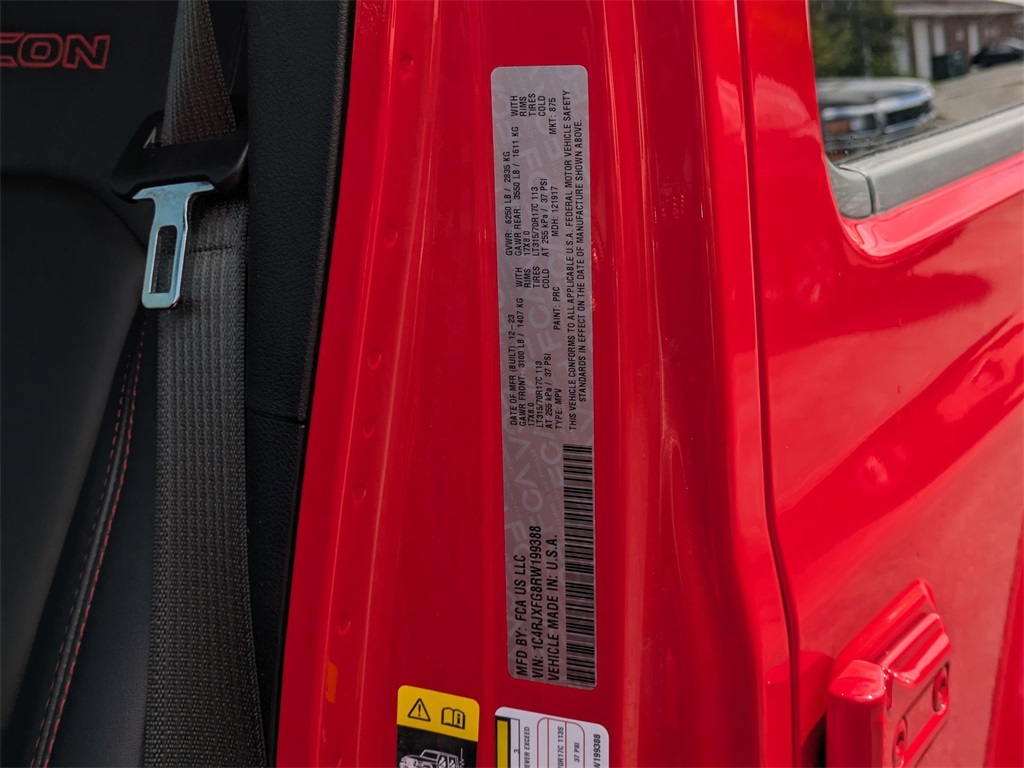 2024 Jeep Wrangler Rubicon X 4WD 3.6L V6 24V VVT 8-Speed AutomaticONE OWNER, Sky One Touch Power Top.Check out all these great options! Quick Order Package 24Y Rubicon X (12.3" Touchscreen Display, 4G LTE Wi-Fi Hot Spot, Acoustic Front Seat Area Carpet, Acoustic Laminated Front Door Glass, Alpine Premium Audio System, Apple CarPlay, Auto High Beam Headlamp Control, Auto-Dimming Rear-View Mirror, Blind Spot & Cross Path Detection, Body Color 3-Piece Hard Top, Connected Travel & Traffic Services, Connectivity - US/Canada, Disassociated Touchscreen Display, Freedom Panel Storage Bag, Google Android Auto, GPS Navigation, HD Radio, Heated Front Seats, Heated Steering Wheel, Integrated Center Stack Radio, Integrated Off-Road Camera, Integrated Voice Command w/Bluetooth, Leather Wrapped Park Brake Handle, Leather Wrapped Shift Knob, MOPAR Hardtop Headliner, Nappa Leather Seats, No Soft Top, ParkSense Rear Park Assist System, Power 4-Way Driver Lumbar Adjust, Power 4-Way Passenger Lumbar Adjust, Power Adjust 8-Way Driver Seat, Power Adjust 8-Way Front Passenger Seat, Premium Door Trim Panel, Radio: Uconnect 5 Nav w/12.3" Display, Rear Window Defroster, Rear Window Wiper/Washer, SiriusXM Radio Service, SiriusXM w/360L, Steel Front Bumper, Steel Rear Bumper, and Universal Garage Door Opener), Trailer Tow Prep Package (7 & 4 Pin Wiring Harness and 700 Amp Maintenance Free Battery), Xtreme 35" Tire Package (35" Tire Suspension, 4.56 Rear Axle Ratio, 97 MPH Vehicle Max Speed Calibration, Anti-Lock 4-Wheel Disc Perf Brakes, MOPAR Hinge-Gate Reinforcement, Wheel Flare Extensions, and Wheels: 17" x 8" Machined w/Black Pockets), 4-Wheel Disc Brakes, 4.10 Rear Axle Ratio, 8 Speakers, ABS brakes, Air Conditioning, Alloy wheels, AM/FM radio: SiriusXM, Apple CarPlay/Android Auto, Automatic temperature control, Aux Battery, Body Color Rubicon Highline Flare (DISC), Brake assist, Cloth Low-Back Bucket Seats, Compass, Delay-off headlights, Driver door bin, Driver vanity mirror, Dual front impact airbags, Dual front side impact airbags, Electronic Stability Control, Emergency communication system: Jeep Connect, Front anti-roll bar, Front Bucket Seats, Front Center Armrest w/Storage, Front dual zone A/C, Front fog lights, Front License Plate Bracket, Front reading lights, Fully automatic headlights, Heated door mirrors, Illuminated entry, Integrated roll-over protection, Low tire pressure warning, Non-Lock Fuel Cap w/o Discriminator, Occupant sensing airbag, Outside temperature display, Overhead airbag, Panic alarm, ParkView Rear Back-Up Camera, Passenger door bin, Passenger vanity mirror, Performance Suspension, Power door mirrors, Power steering, Power Top Quarter Window Storage Bag, Power windows, Radio data system, Radio: Uconnect 5 w/12.3" Display, Rear anti-roll bar, Rear reading lights, Remote keyless entry, Removable Rear Quarter Windows, Security system, Sky 1-Touch Power Top, Speed control, Split folding rear seat, Steering wheel mounted audio controls, Stop-Start Dual Battery System, Tachometer, Telescoping steering wheel, Tilt steering wheel, Traction control, Trip computer, Variably intermittent wipers, Voltmeter, and Wheels: 17" x 7.5" Machined/Painted Black.CARFAX One-Owner. Clean CARFAX.Odometer is 13707 miles below market average!At Reineke Family of Dealerships, we pride ourselves on delivering a convenient and transparent buying experience. Get your key from Reineke! Please be aware that all listed vehicles are subject to additional applicable sales tax, titling, license, and registration fees, including a registration convenience fee of $50 where applicable and a documentary fee of up to $387. We attempt to update this inventory on a regular basis. However, there can be a delay between the sale of a vehicle and the update of the inventory. Vehicle mileage listed may vary due to vehicle demonstrations. All pre-owned vehicles are represented and sold AS-IS with no dealer warranty, although manufacturer warranty may remain and ve